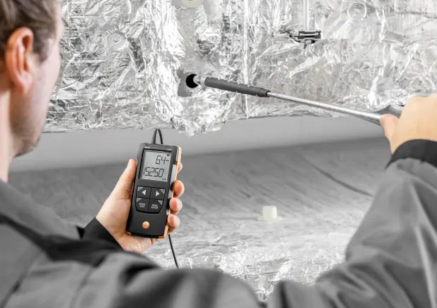 With the compact 16 mm vane anemometer testo 416 with telescopic probe and App connection, you can carry out flow measurements in the ventilation ducts of air conditioning and ventilation systems easily, quickly and precisely.