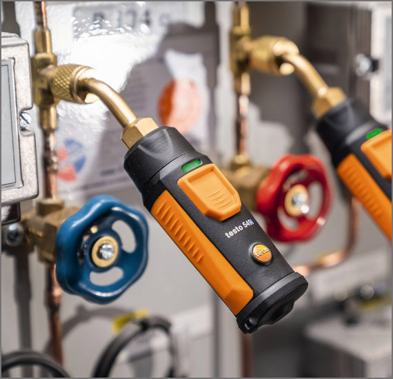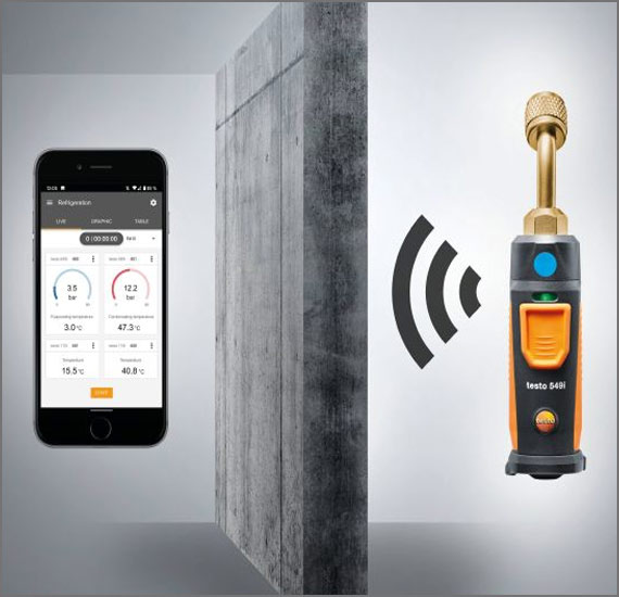 The professional and compact testo 549i high-pressure gauge can be controlled via the testo Smart App using your smartphone or tablet, and is ideal for carrying out servicing and troubleshooting on air conditioning and refrigeration systems. The App also enables evaporation and condensation temperatures to be calculated automatically.